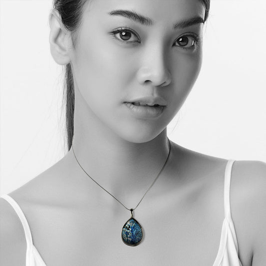 BRUSH BLUE DROP PENDANT ON A CHAIN NECKLACE - SD157S - on Satchel