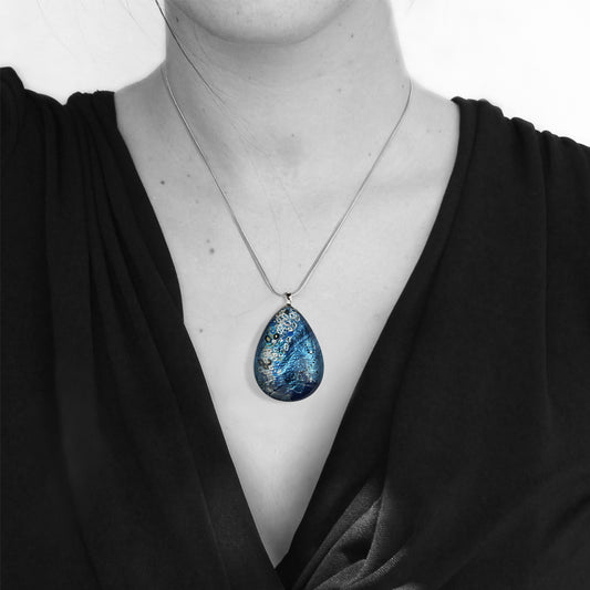 BRUSH BLUE LARGE DROP PENDANT ON A CHAIN NECKLACE - SD161