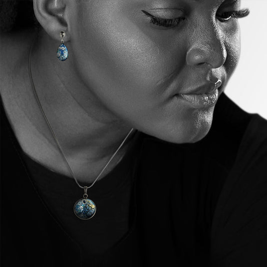 BRUSH BLUE DROP PENDANT ON A CHAIN NECKLACE - SD157 - in Circle Box