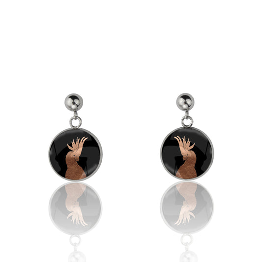 COCKATOO CLOSE-UP DANGLE DROP CIRCLE EARRINGS - MFY228S - on Satchel