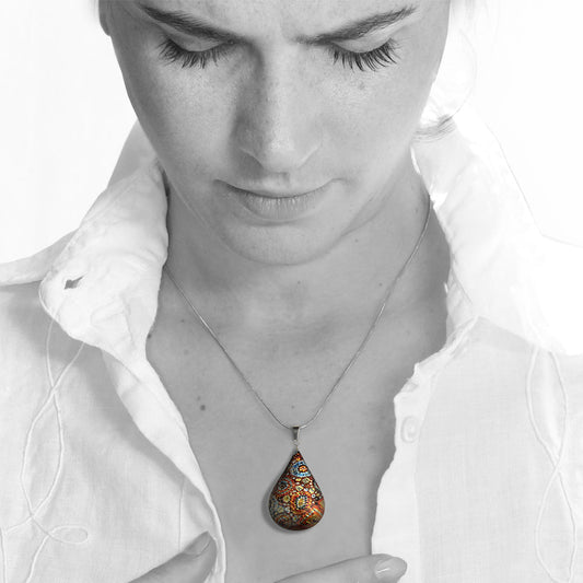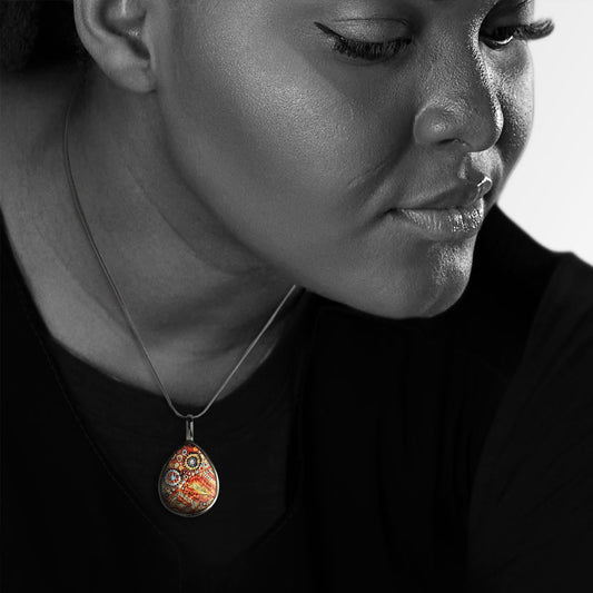 CROCODILE STORY DOMED DROP PENDANT ON A CHAIN NECKLACE - SD298