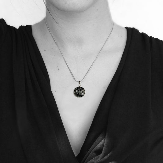 CORINNE SILVER AND BLACK XS CIRCLE PENDANT ON A CHAIN NECKLACE - SD251S - on Satchel