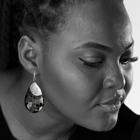 DANDLE DROP CORINNE LARGE SILVER AND BLACK EARRINGS - SD248