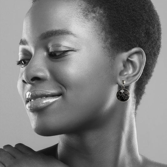DANDLE DROP CORINNE CIRCLE SILVER AND BLACK EARRINGS - SD245S - on Satchel