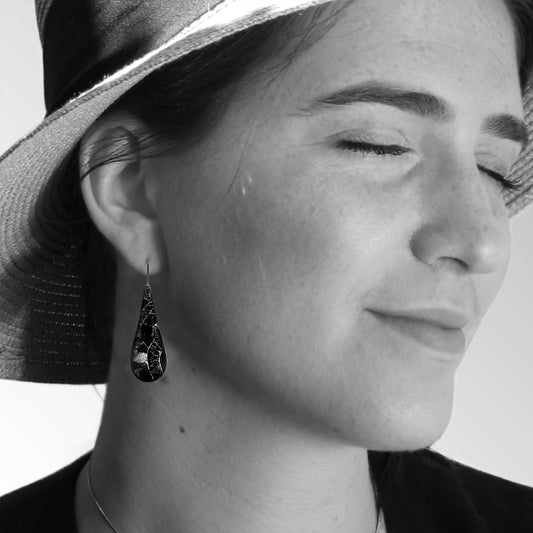 DANDLE DROP CORINNE SILVER AND BLACK EARRINGS - SD244S - on Satchel