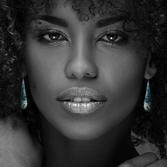 DANDLE DROP BRUSH BLUE EARRINGS - SD149S - on Satchel