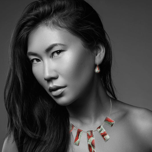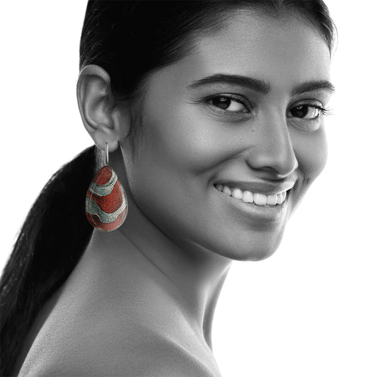 DANDLE DROP FABRIANNE OVAL RED AND SILVER EARRINGS - SD328S - on Satchel