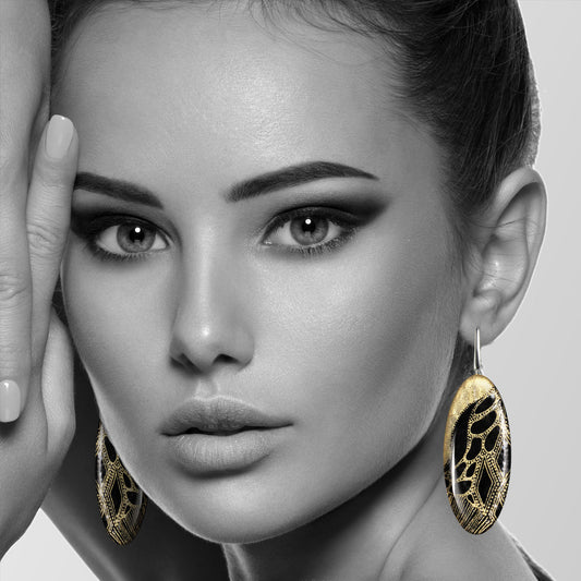 DANDLE DROP ELSIE STATEMENT XXL GOLD AND BLACK OVAL EARRINGS - SD222