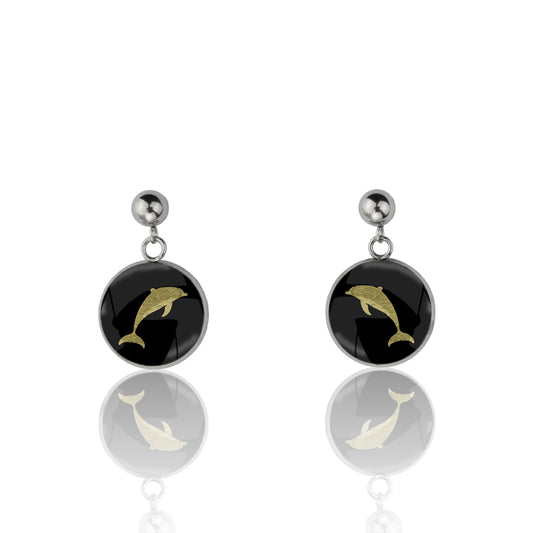 DOLPHIN DANGLE DROP CIRCLE EARRINGS - MFY157 - in Circle Box