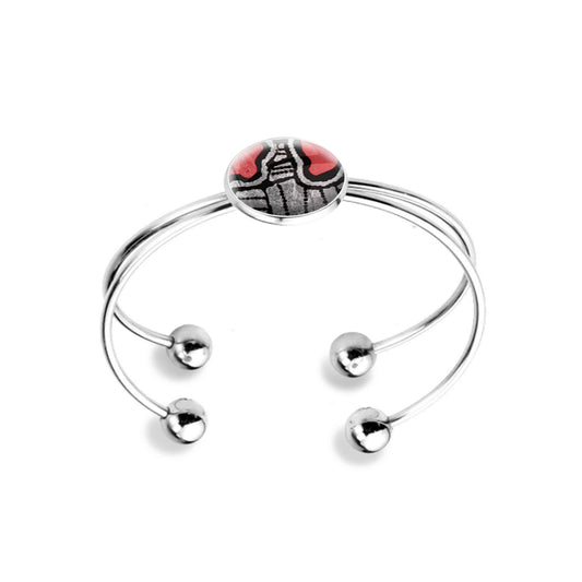 AMELIA SILVER, BLACK AND RED ADJUSTABLE OPEN BANGLE - B134