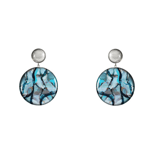 ENTREMELES GREY AND BLUE MONDRIAN TREE INSPIRED DANGLE XS DROP EARRINGS - SD486 - in Circle Box
