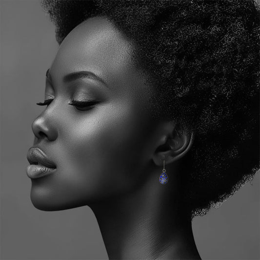 GERALDINE ROYAL BLUE DANGLE DROP CIRCLE EARRINGS - M083 - in Circle Box