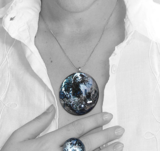 I LOVE MY WORLD PLANET EARTH CIRCLE PENDANT ON A CHAIN NECKLACE - M170S - on Satchel