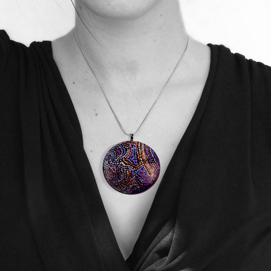 JOY PURPLE CIRCLE PENDANT ON A CHAIN NECKLACE - SD090S - on Satchel