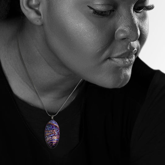 JOY PURPLE NARROW OVAL PENDANT ON A CHAIN NECKLACE - SD091