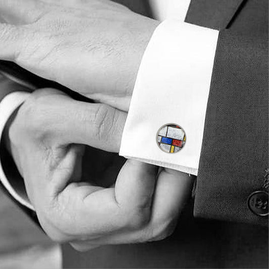 ODE TO MONDRIAN POP ART ABSTRACT PRIMARY COLORS CIRCLE ELEGANT CUFFLINKS - M176