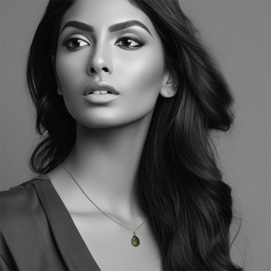 SARAH GOLD AND BLACK XS DROP PENDANT ON A CHAIN NECKLACE - SD418S - on Satchel