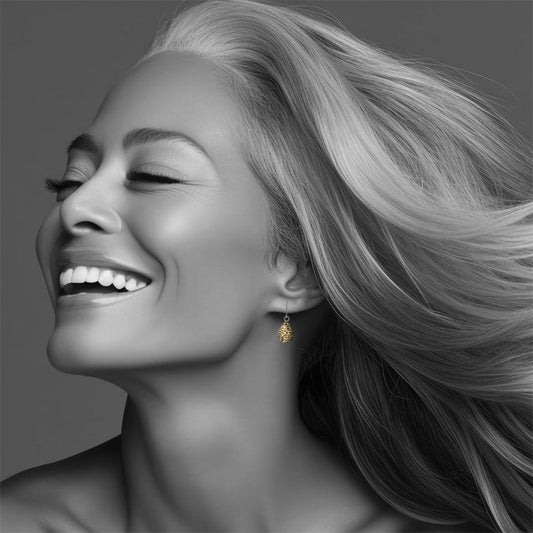 URSULA BLACK AND GOLD DANGLE XS DROP EARRINGS - M018 - in Circle Box