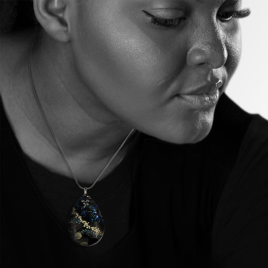 WENDY BLACK NARROW OVAL PENDANT ON A CHAIN NECKLACE - SD135