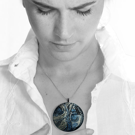 WENDY BLUE LARGE CIRCLE PENDANT ON A CHAIN NECKLACE - SD115