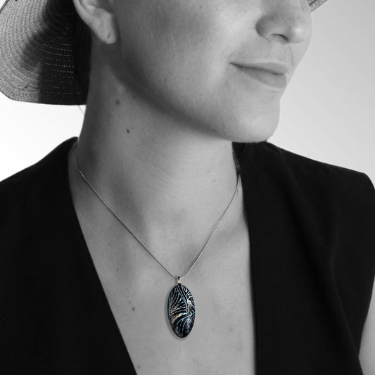 WENDY BLUE NARROW OVAL PENDANT ON A CHAIN NECKLACE - SD113