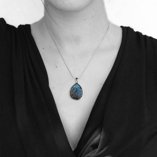 WOMAN SEA STORY BLUE LARGE DROP PENDANT ON A CHAIN NECKLACE - SD316