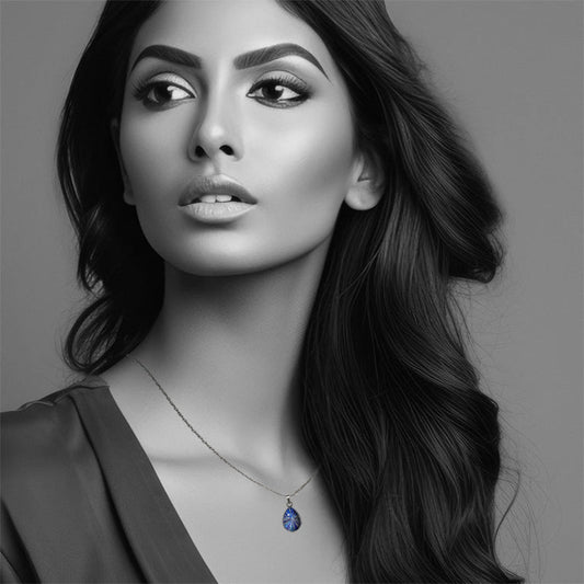 WOMAN SEA STORY BLUE DROP PENDANT ON A CHAIN NECKLACE - SD315S - on Satchel