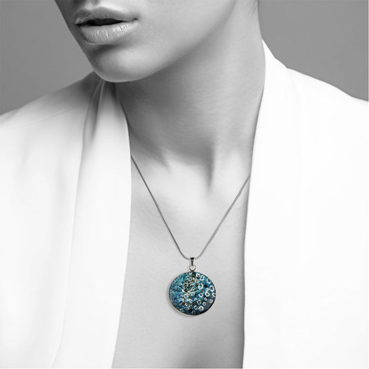 BRUSH BLUE CIRCLE PENDANT ON A CHAIN NECKLACE - SD158 - in Circle Box