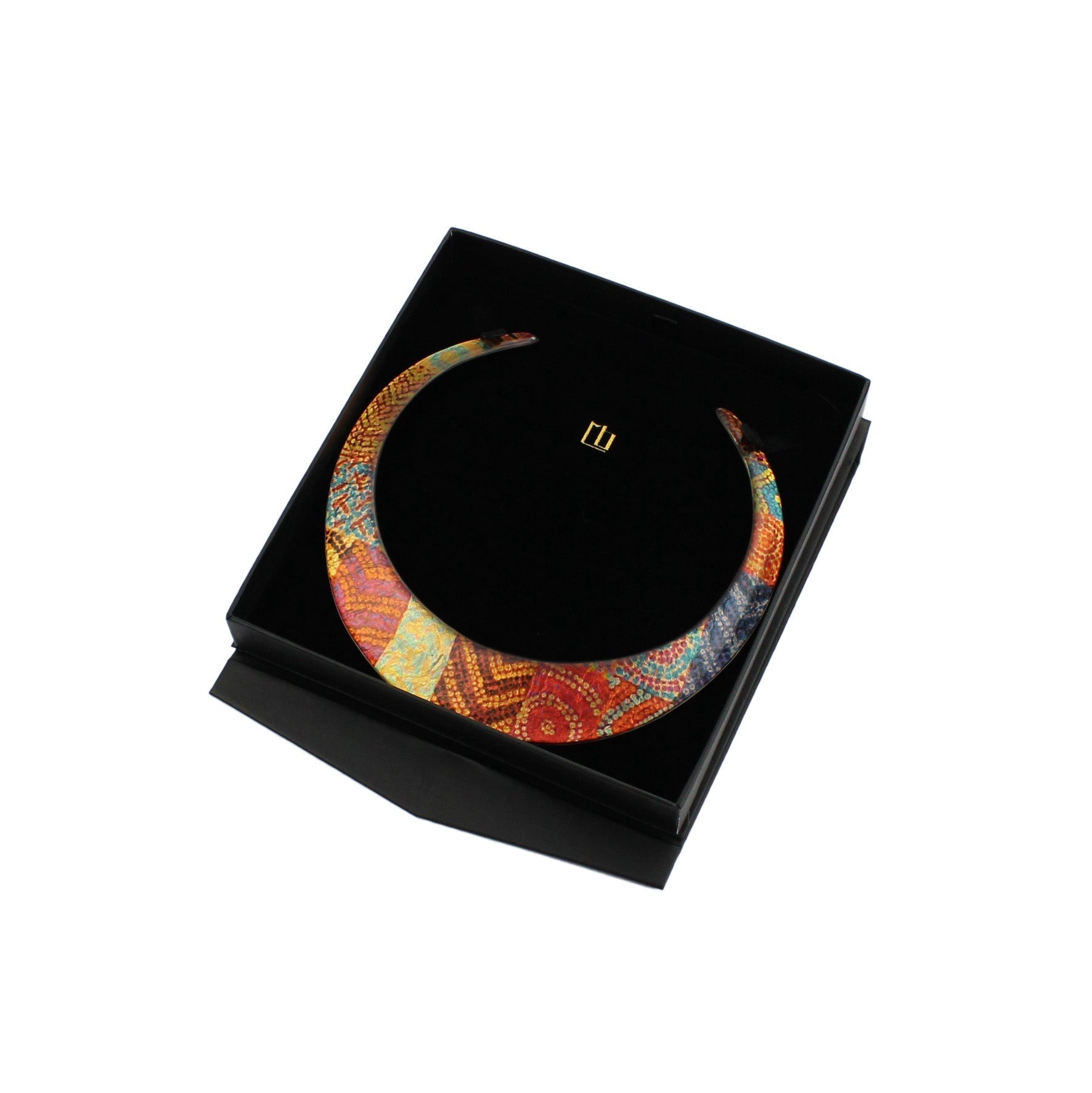 This item is a joint work with Warlukurlangu Artists of Yuendumu Corporation, 3,5 hours of Alice Springs, NT. Add sophistication and elegance to any outfit with this meaningful unique piece of jewellery. Designed and handmade in Australia, it will be sent in an elegant gift box with an information leaflet (story associated with the artwork featured, name of the artist who will receive 10% royalties, instructions to make to size when possible).