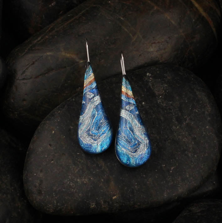 KERRY INDIAN ISLAND BLUE DANGLE DROP LARGE M EARRINGS - D715