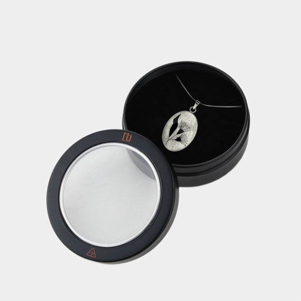AUSTRALIAN NATIVE FLORA - EUCALYPTUS GUMTREE FLOWER OVAL CIRCLE PENDANT ON A CHAIN NECKLACE - D870 - in Circle Box