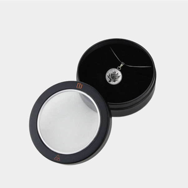 AUSTRALIAN NATIVE FLORA - PROTEA SUGARBUSH XS CIRCLE PENDANT ON A CHAIN NECKLACE - D925 - in Circle Box