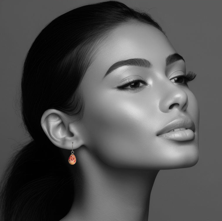 BESS ORANGE CORAL PINK DANGLE XS DROP EARRINGS - M056 - in Circle Box