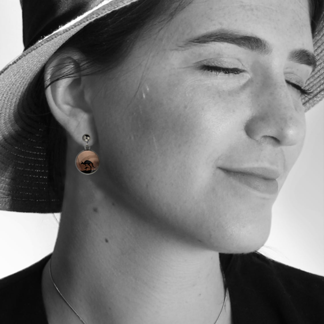 KANGAROO DANGLE DROP CIRCLE EARRINGS - MFY138 - in Circle Box