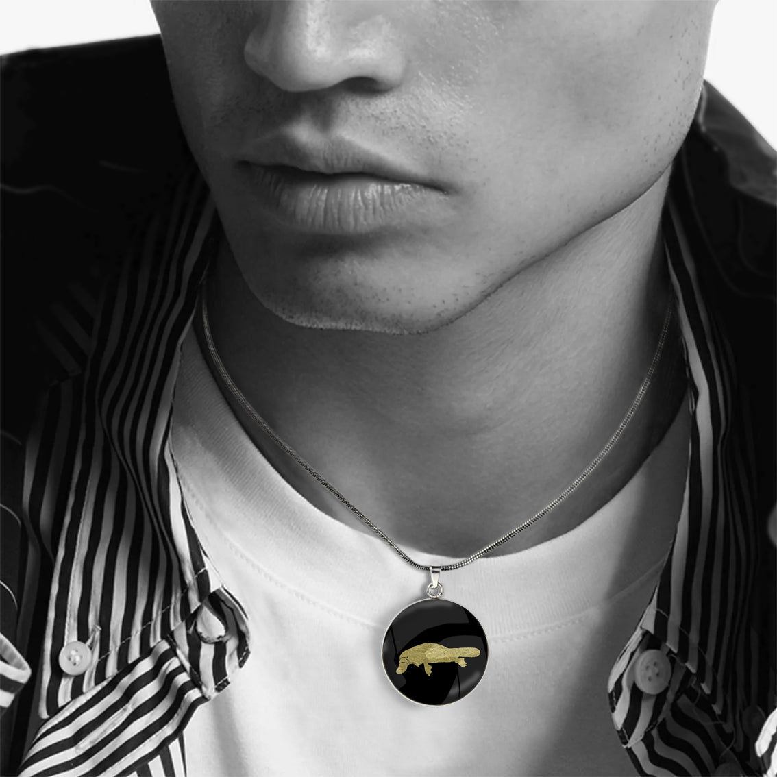 PLATYPUS CIRCLE PENDANT ON A CHAIN NECKLACE - MFY184S - on Satchel