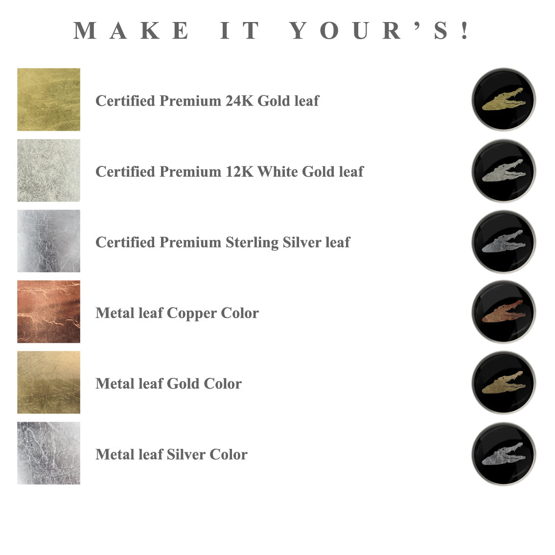 These cufflinks are mounted on a stainless steel base and will be elegantly presented in a gift box, complete with an accompanying card that explains the crafting process and specifying the type of precious metal leaf used.