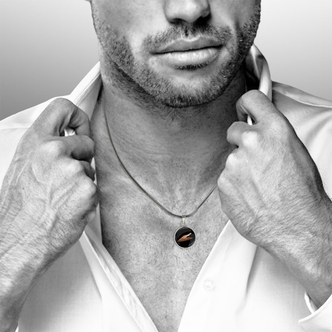 This necklace is elegantly paired with a stainless steel chain for added durability and timeless style.