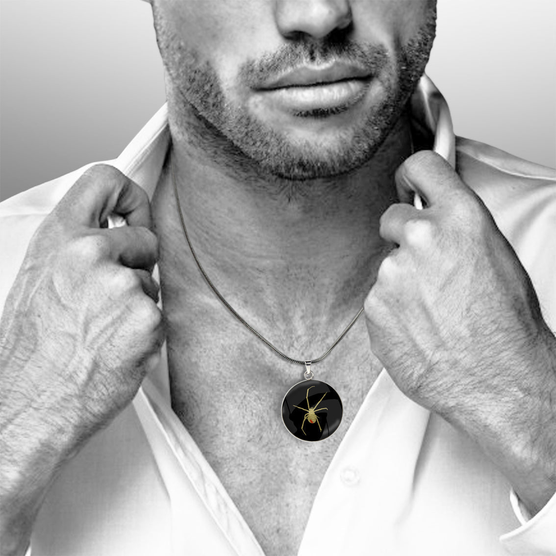 REDBACK CIRCLE PENDANT ON A CHAIN NECKLACE - MFY201 - in Circle Box