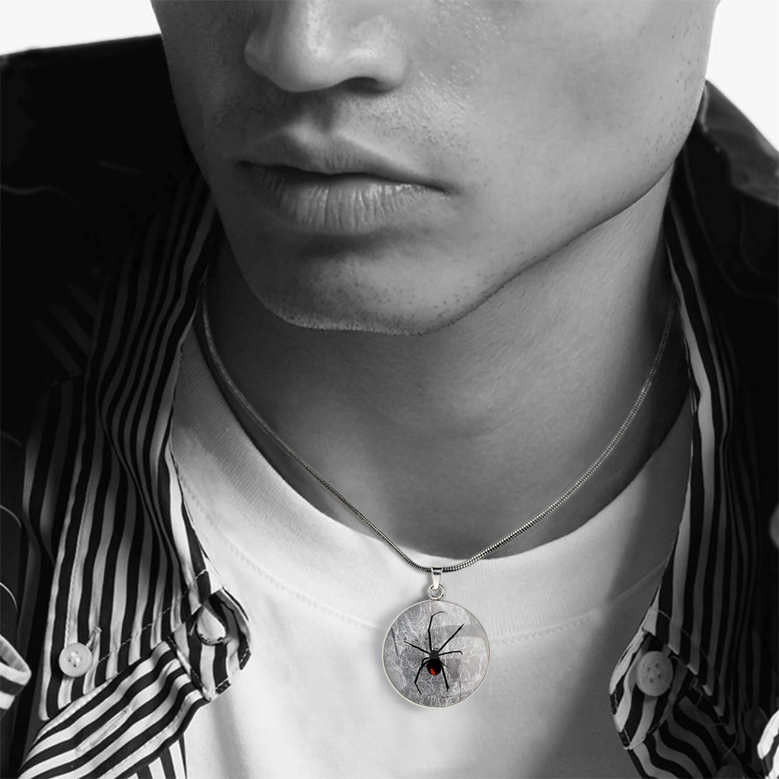REDBACK CIRCLE PENDANT ON A CHAIN NECKLACE - MFY201S - on Satchel