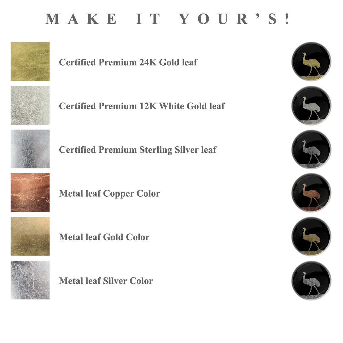 Crafted from high-quality epoxy resin, our jewelry pieces are a testament to our exceptional artistic process. We employ a one-of-a-kind technique, delicately embedding Dutch gold or silver leaf, resulting in truly distinctive creations.