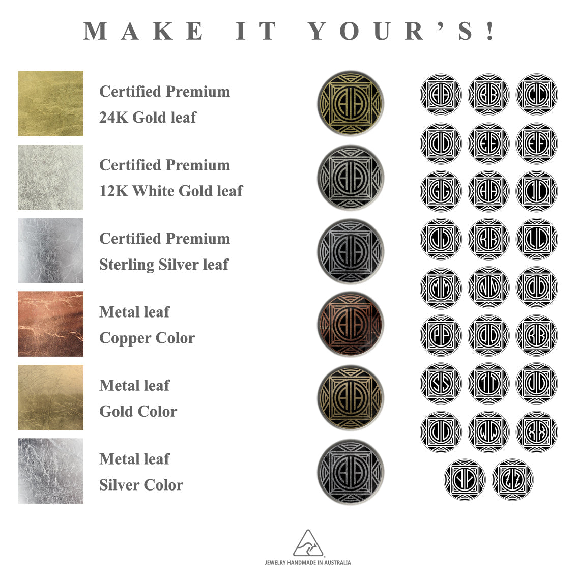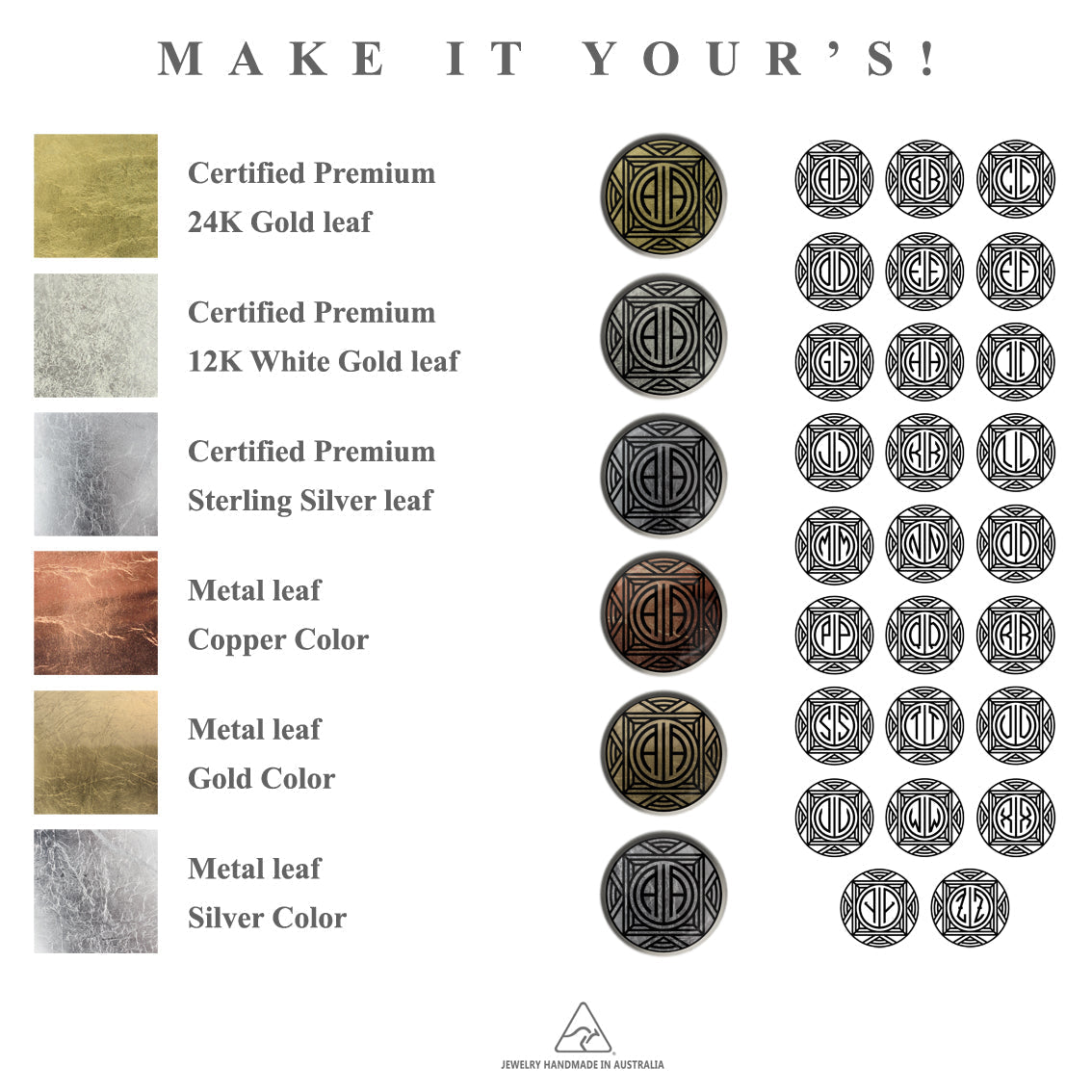 These cufflinks are mounted on a stainless steel base and will be elegantly presented in a gift box, complete with an accompanying card that explains the crafting process and specifying the type of precious metal leaf used.