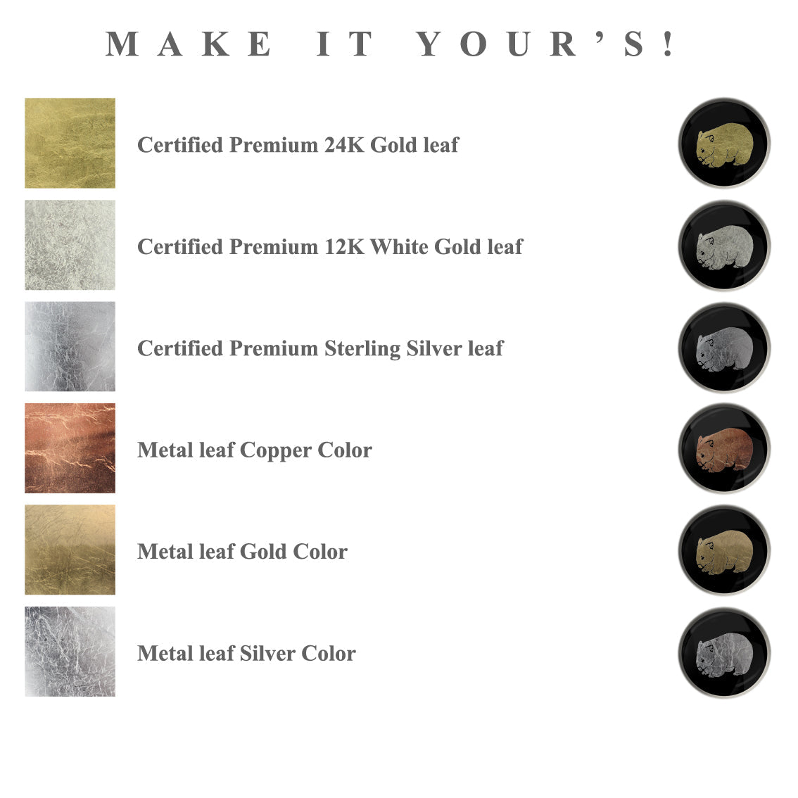 These cufflinks are mounted on a stainless steel base and will be elegantly presented in a gift box, complete with an accompanying card that explains the crafting process and specifying the type of precious metal leaf used.