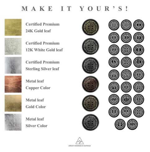 Crafted from high-quality epoxy resin, our jewelry pieces are a testament to our exceptional artistic process. We employ a one-of-a-kind technique, delicately embedding Dutch gold or silver leaf, resulting in truly distinctive creations.