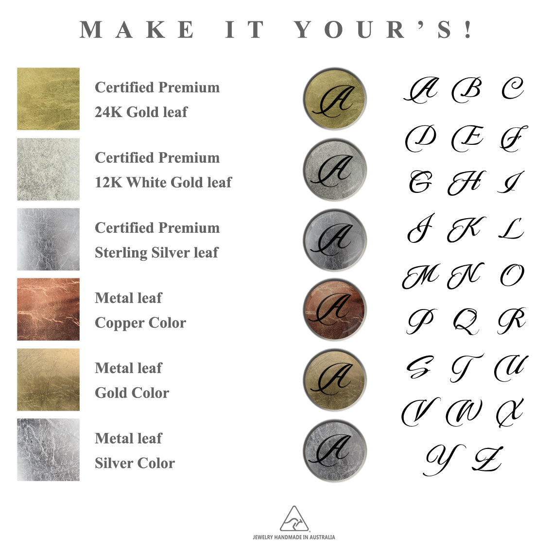 Crafted from high-quality epoxy resin, our jewelry pieces are a testament to our exceptional artistic process. We employ a one-of-a-kind technique, delicately embedding Dutch gold or silver leaf, resulting in truly distinctive creations.