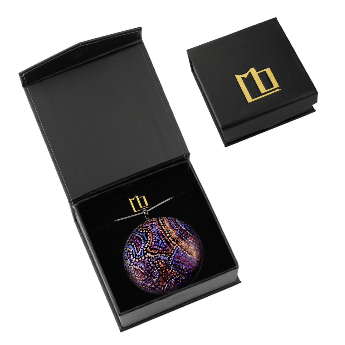 This item is a joint work with Warlukurlangu Artists of Yuendumu Corporation, 3,5 hours of Alice Springs, NT. Add sophistication and elegance to any outfit with this meaningful unique piece of jewellery. Designed and handmade in Australia, it will be sent in an elegant gift box with an information leaflet (story associated with the artwork featured, name of the artist who will receive 10% royalties, instructions to make to size when possible).