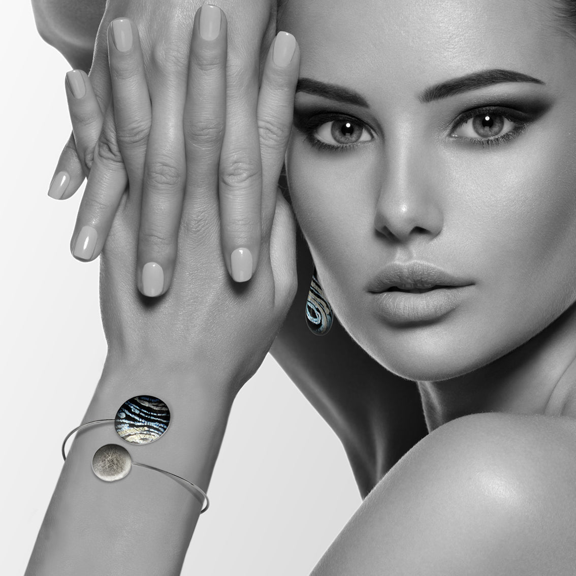 Crafted from high-quality epoxy resin, our jewelry pieces are a testament to our exceptional artistic process. We employ a one-of-a-kind technique, delicately embedding Dutch gold or silver leaf, resulting in truly distinctive creations.