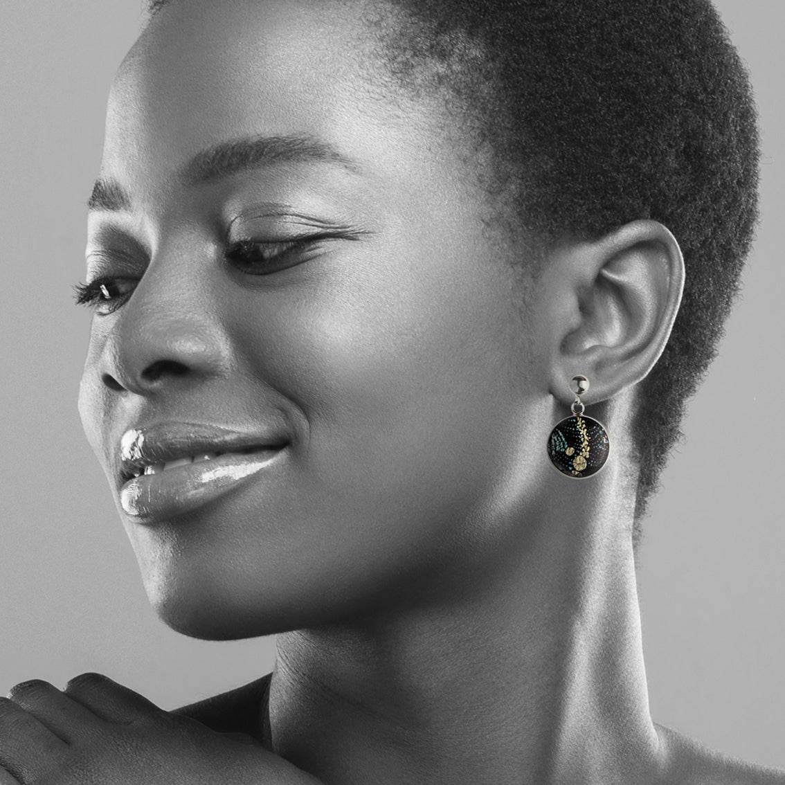 Crafted from high-quality epoxy resin, our jewelry pieces are a testament to our exceptional artistic process. We employ a one-of-a-kind technique, delicately embedding Dutch gold or silver leaf, resulting in truly distinctive creations.