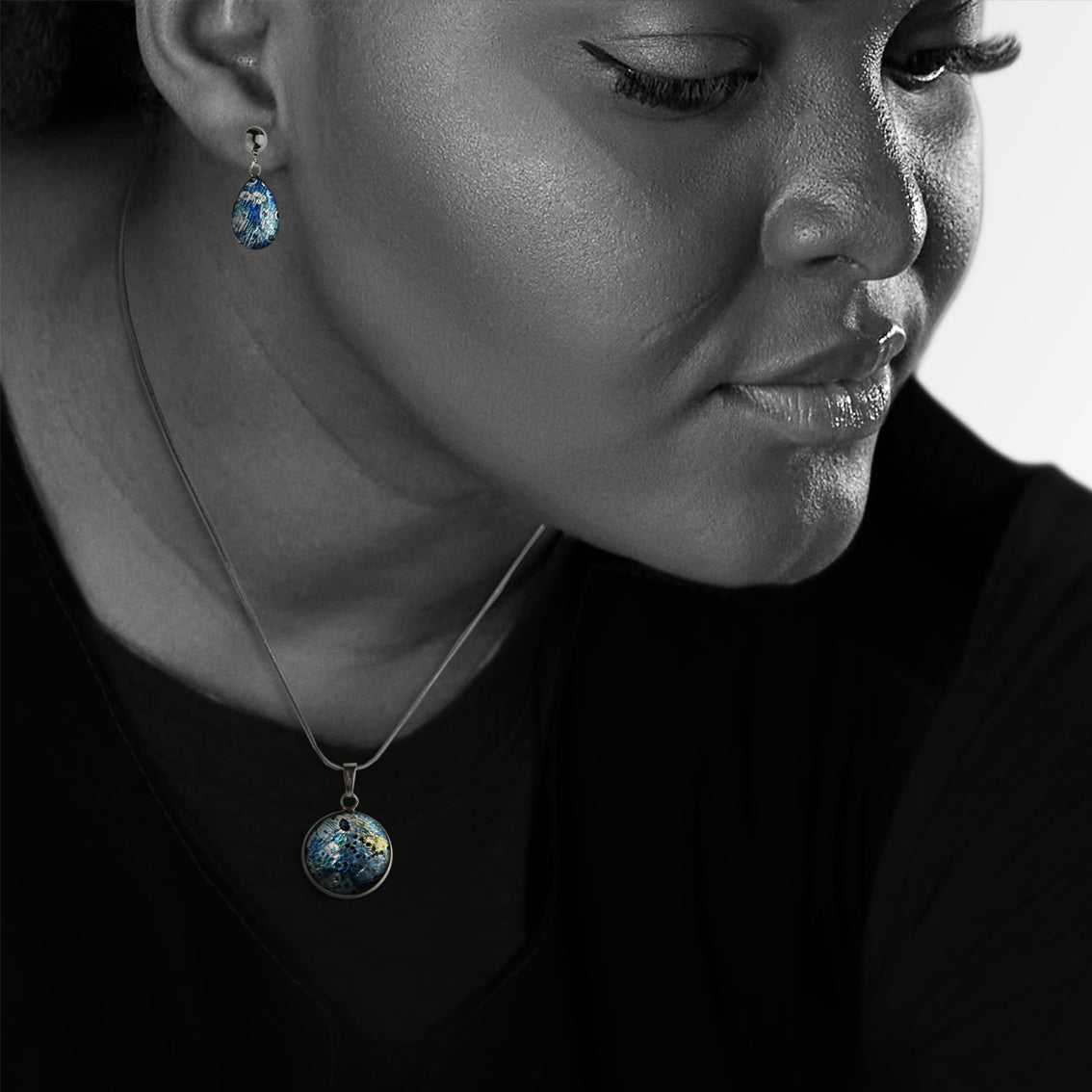 Crafted from high-quality epoxy resin, our jewelry pieces are a testament to our exceptional artistic process. We employ a one-of-a-kind technique, delicately embedding Dutch gold or silver leaf, resulting in truly distinctive creations.