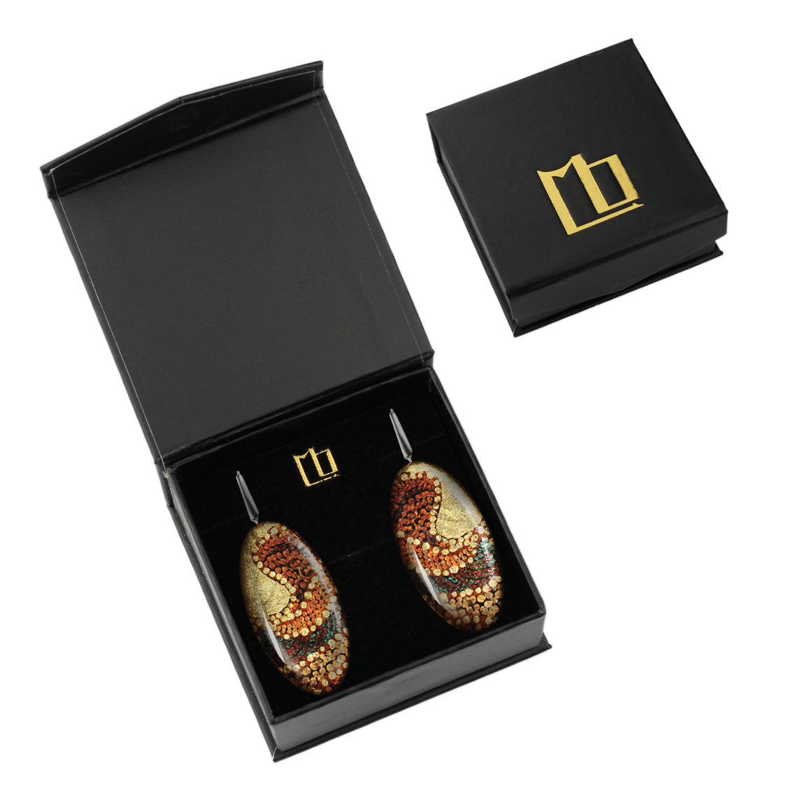 Crafted from high-quality epoxy resin, our jewelry pieces are a testament to our exceptional artistic process. We employ a one-of-a-kind technique, delicately embedding Dutch gold or silver leaf, resulting in truly distinctive creations.