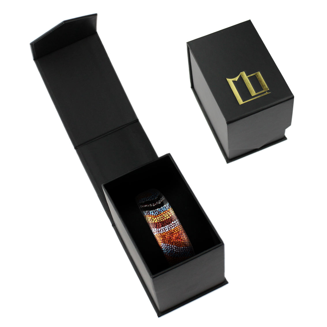 This item is a joint work with Warlukurlangu Artists of Yuendumu Corporation, 3,5 hours of Alice Springs, NT. Add sophistication and elegance to any outfit with this meaningful unique piece of jewellery. Designed and handmade in Australia, it will be sent in an elegant gift box with an information leaflet (story associated with the artwork featured, name of the artist who will receive 10% royalties, instructions to make to size when possible).